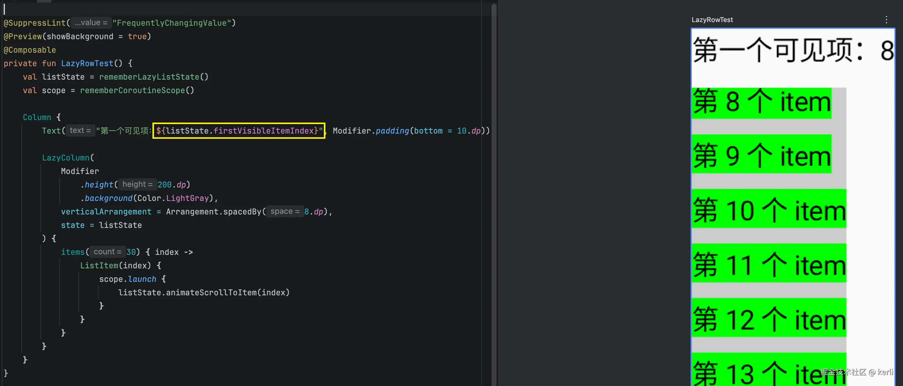 除了 firstVisibleItemIndex,还有 firstVisibleItemScrollOffset/layoutInfo 可以获取更多信息。