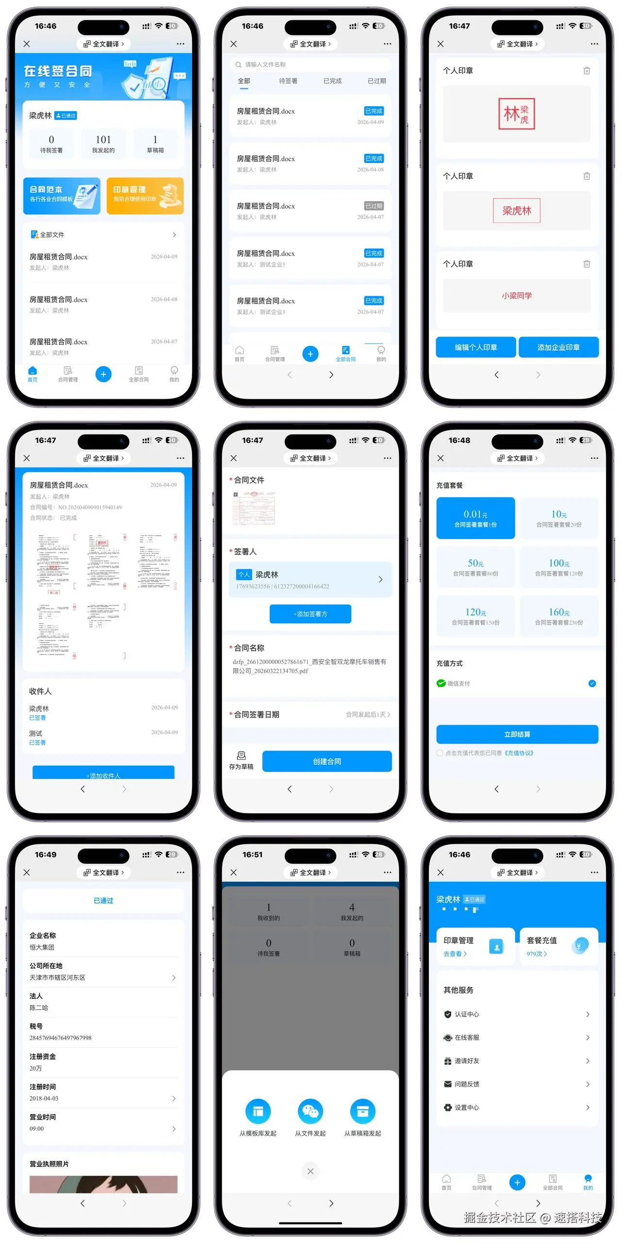 随着灵活就业人口突破2亿,个人电子签需求呈现爆发式增长。典型场景包括:自由职业者协议签署、在线教育课程购买、租房合同电子化等。腾讯电子签通过微信小程序触达模式,将富途证券入职合同签署流程从3天压缩至1.8天,验证了C端市场的巨大潜力。