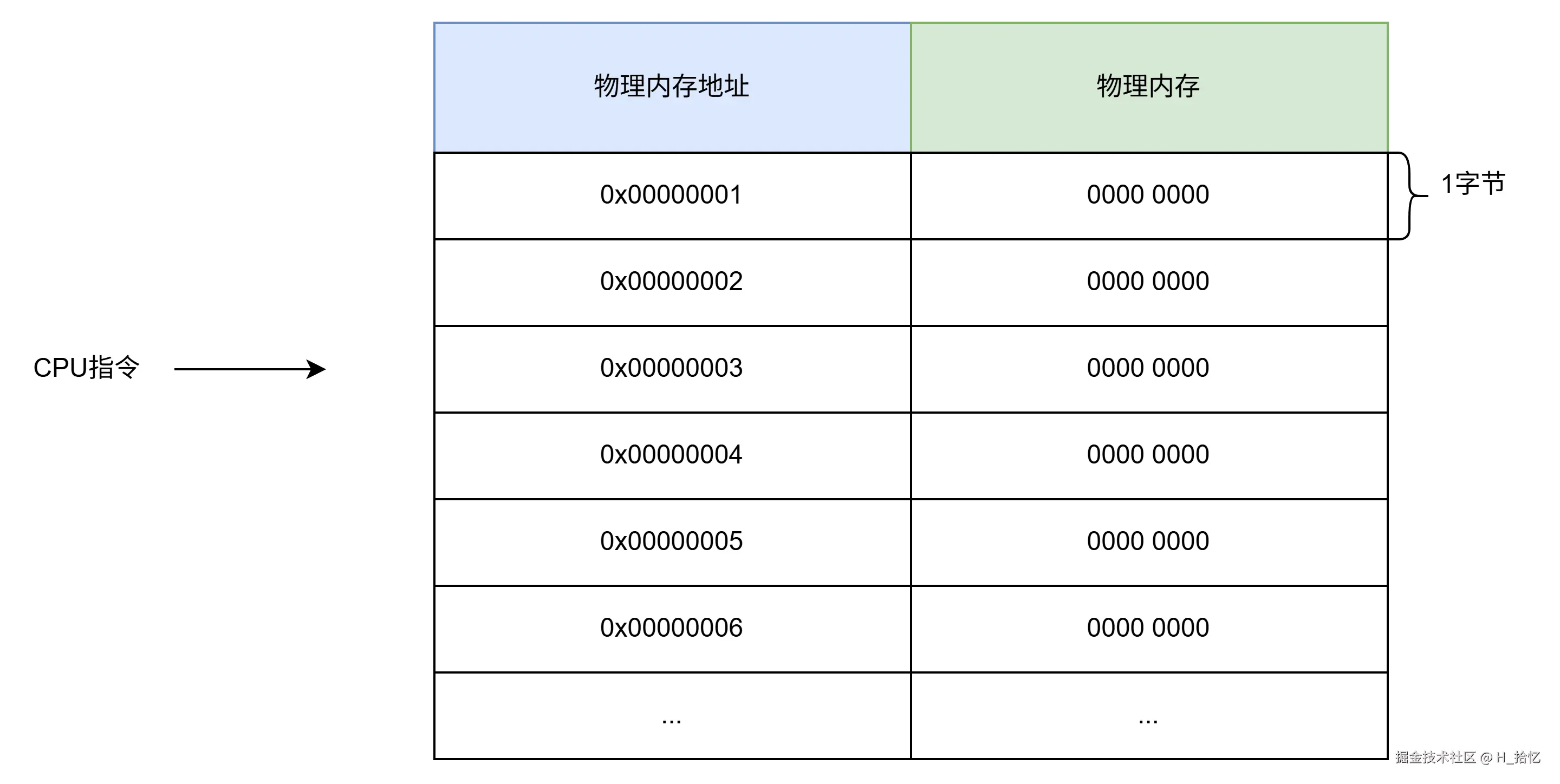 每个元素都会对应一个地址.称为物理内存地址.CPU在运算的过程中.如果需要从内存中取一个字节的数据.就需要基于这个数据的物理内存地址去运算.而且物理内存的地址是连续的.可以根据一个基准地址进行偏移来取得相应的连续内存数据.
