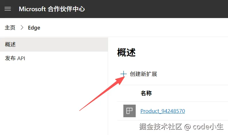 登录 Microsoft Partner Center(合作伙伴中心),进入 Edge 扩展仪表板,点击 “创建新扩展”。