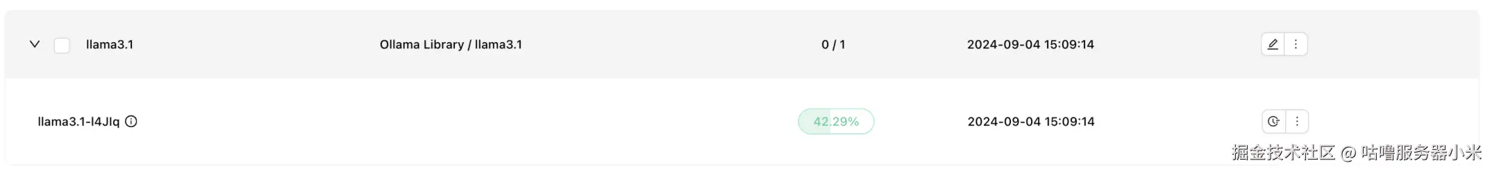 访问 GPUStack,选择模型-部署模型,选择从 Ollama Library 部署,填写前面推送到 Docker Registry 的模型名称,教程示例是 llama3.1,如下: