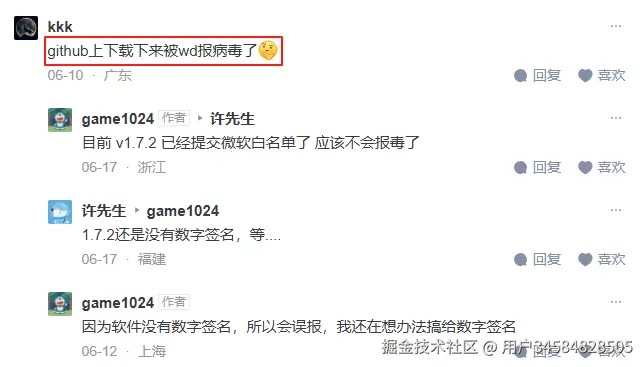 有钱的开发团队可以买微软数字签名让微软来背书。没买的就只能关闭杀毒软件或手动加入白名单。