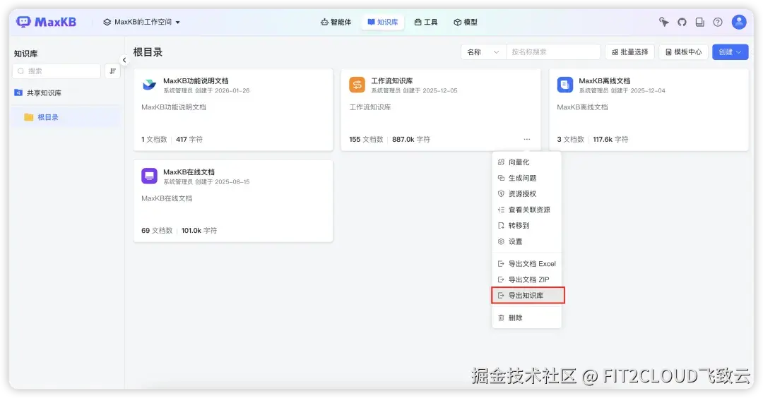 MaxKB v2.8.0社区版新增知识库全量导入导出功能。此前的版本仅支持导出文档及关联问题,无法导出文档标签。新版本MaxKB的导出知识库内容包含知识库所有元数据(包括文档、标签、问题和工作流)及其关联关系,支持跨环境迁移与批量复用,有助于提升知识库管理效率。