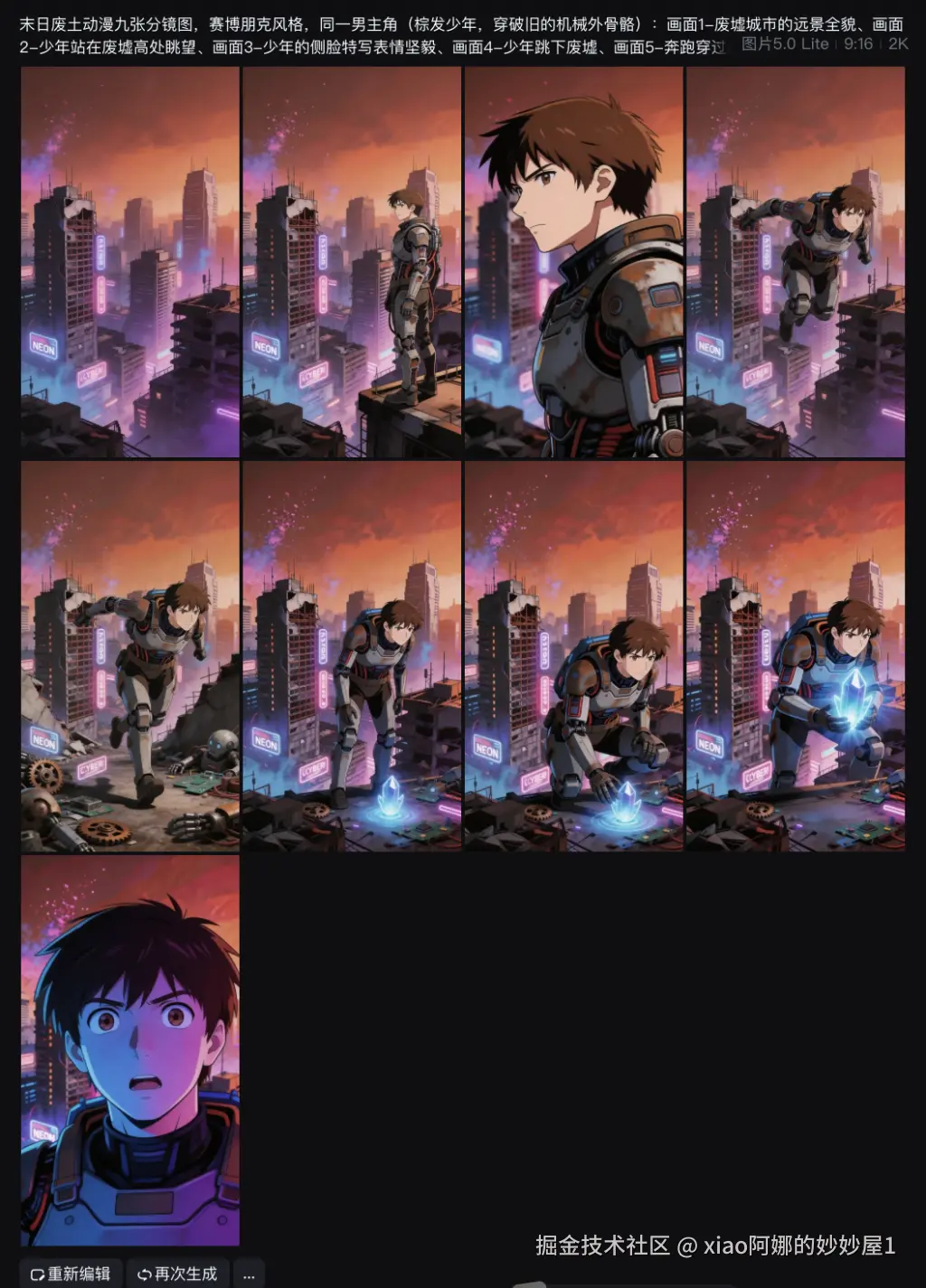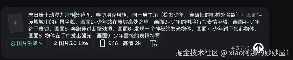 Step 1:用即梦图片5.0生成九宫格分镜图