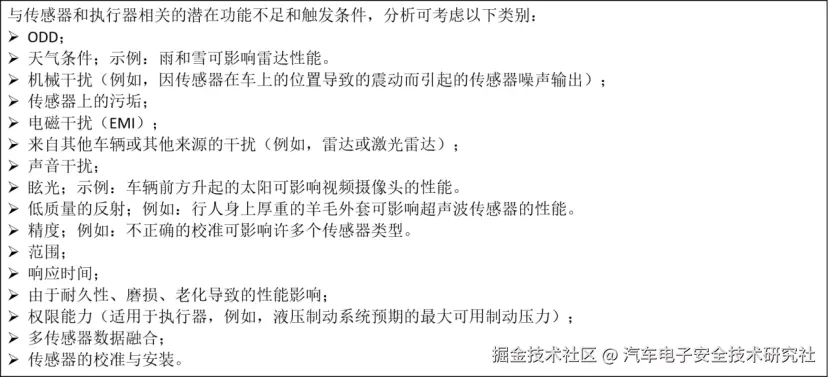 - 与传感器和执行器相关的潜在功能不足和触发条件
