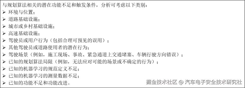 - 与规划算法相关的潜在功能不足和触发条件