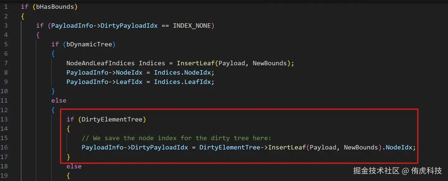 新加的AABBTree称为DirtyElementTree,Payload插入完成后,PayloadInfo会存储其在DirtyTree中的Node下标。