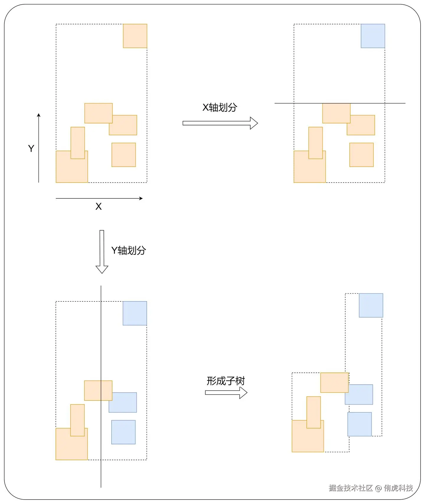 按照Max-Min的方式,应该用X轴划分,按照方差方式,应该按照Y轴划分,结果上看方差方式更优。