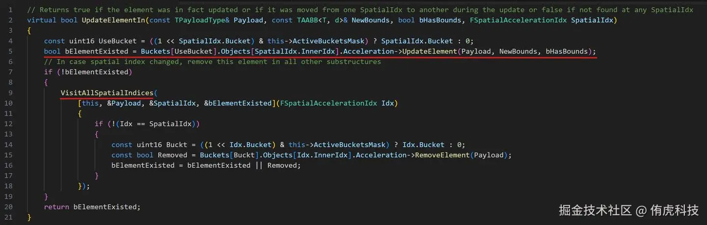 插入Payload比较有意思,既要不改变AABBTree的结构,又要插入元素。UE做法是另外创建了一个容器,来存储插入的元素,而且这个容器同样支持空间加速查询。一种实现是2D Grid,另一种实现是再加一个Dynamic AABBTree。还是比较复杂的。