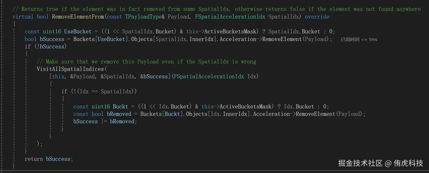 就是从AABBTree移除,先从Buckets找到对应的AABBTree,然后调用RemoveElement移除。