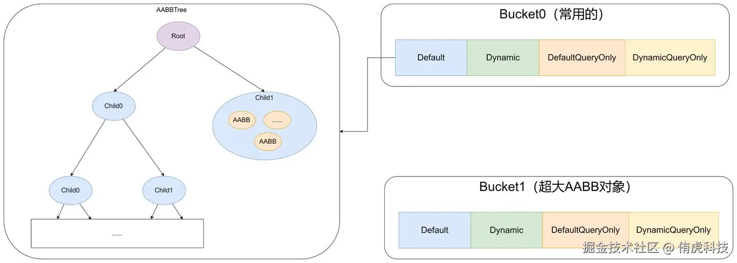 “Static”并不意味着不更新,比如可以把石头先改成Movable移动,再改回Static等等。Static Tree的构建总是先提供所有AABB对象,一次性建好,之后也能继续添加/删除/修改Payload,但树节点结构不实时改变,只会重建。