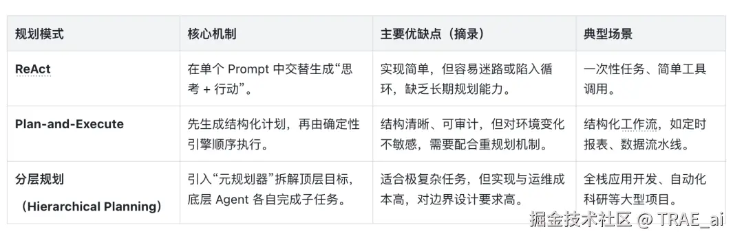 对大多数企业级场景,用结构化计划配合“异常触发重规划”已经足够稳健;只有在特别开放、长期的任务中,才需要引入多层规划与多 Agent 协作。