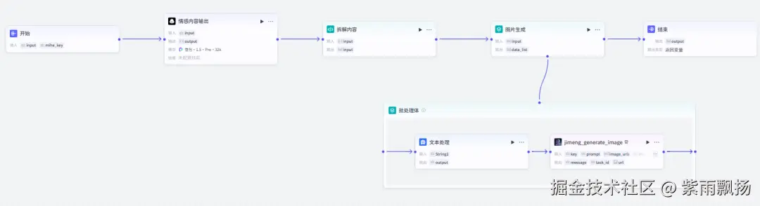 该节点的作用是通过代码节点对生成情感内容的文案进行有效分割断句。