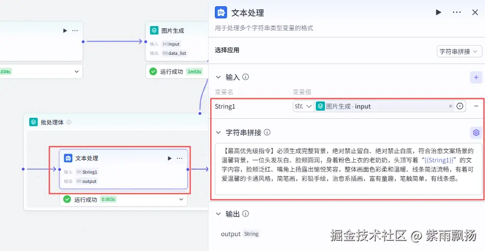 在批处理体里添加一个扣子官方的【文本处理】节点->设置参数