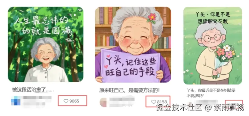 最近一股治愈系银发IP的风暴席卷了抖音、小红书、视频号等平台——以温暖笑容的老奶奶为主角的图文和短视频,频频斩获10万+点赞,成为现象级流量密码。这类内容通过卡通形象与治愈文案的巧妙融合,精准击中了当代人在快节奏生活中的情感缺口:老奶奶温馨场景,搭配"人生最忌讳的就是圆满"的短句,道出了人生哲理,形成了视觉与心灵的双重治愈体验。