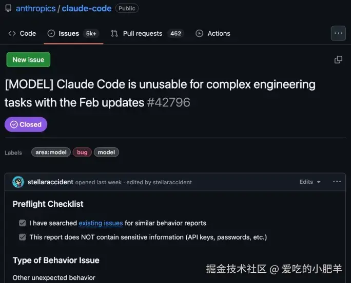 这位老姐直接在 GitHub 上开了个 Issue,标题简单粗暴 —— 「Claude Code 已经没法用来做复杂工程了」。