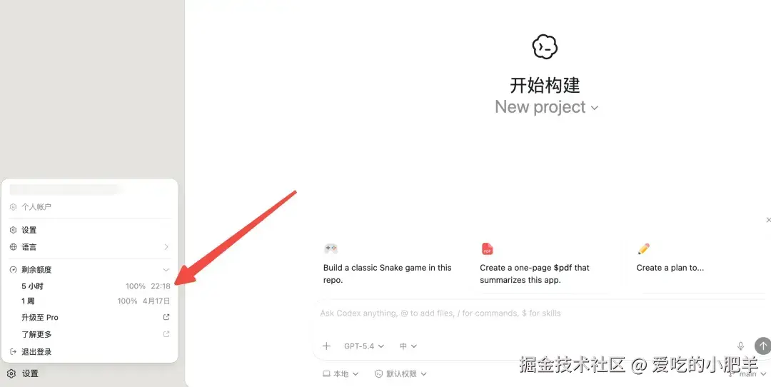在本地的 Codex CLI 上, 你可以直接执行:/status 指令就可以查看。