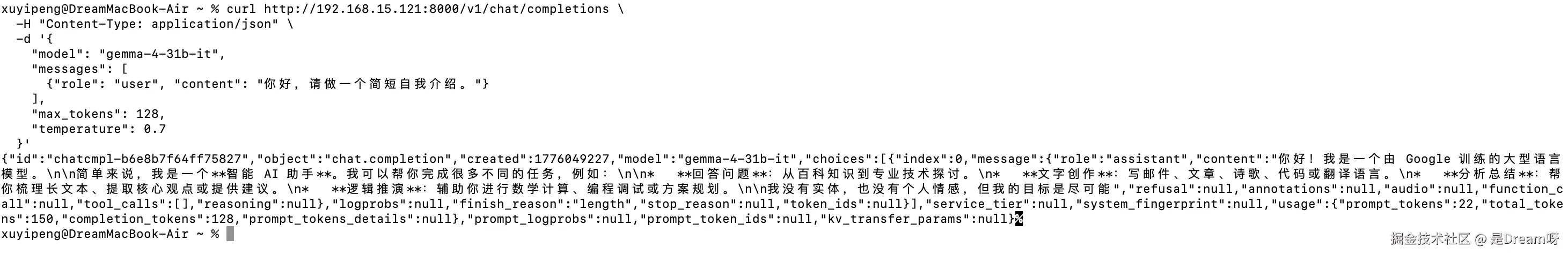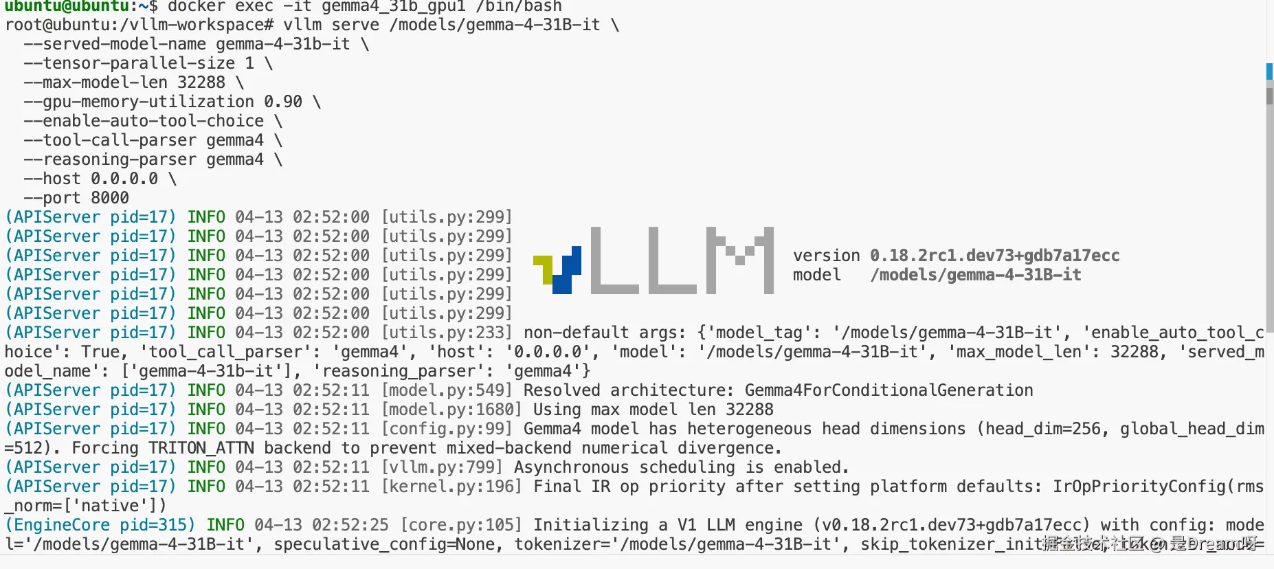 回头看这次 google/gemma-4-31B-it 的部署,最花时间的从来不是敲命令本身,而是不断把那些看起来不大的问题一个个补齐,也正是这些细节,决定了一个模型到底只是能启动,还是真正能使用。