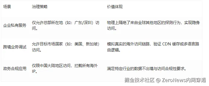 ● 业务合规性: 某些业务受限于法律合规或网络质量,必须限制仅特定地区的用户可访问。