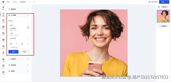 当客户说"要那种很网感的效果"时,醒图就是答案。这款字节系App把图片尺寸在线修改玩出了花样——不只是改数字,而是智能重构画面氛围。把横版风景照改成9:16手机壁纸,AI会自动叠加光影滤镜和动态模糊,瞬间从"游客照"变"氛围感大片"。