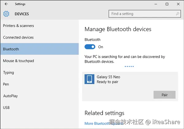 - 电脑端依次进入设置 > 设备 > 蓝牙和其他设备