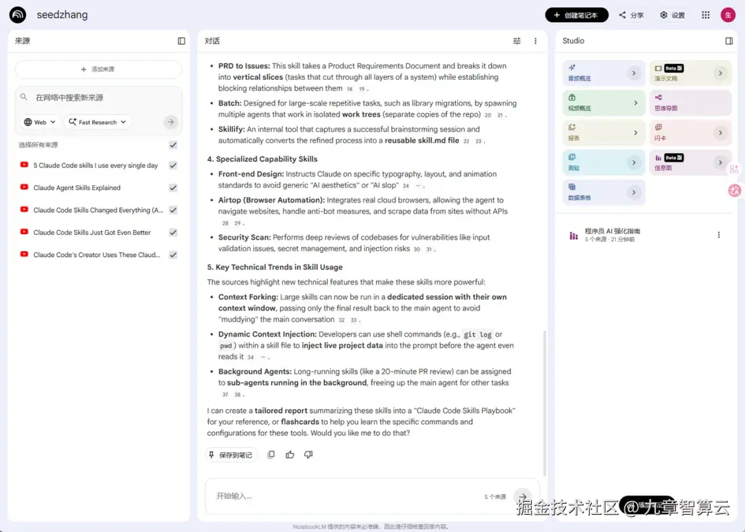 你懂的,Notebook LM 那 AI 播客、那闪卡生成、那深度研究,功能一坨一坨的,用着是真爽。