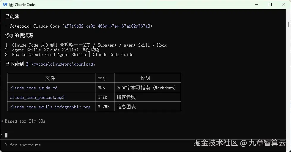 目标:创建一个叫"Claude Code"的 notebook,搜相关 YouTube 视频,导入后生成一篇 3000 字文稿 + 一期 AI 播客,全部下载。