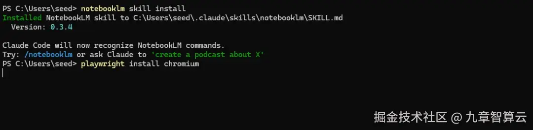3.4 第四步:装 notebooklm skill(就一段提示词)