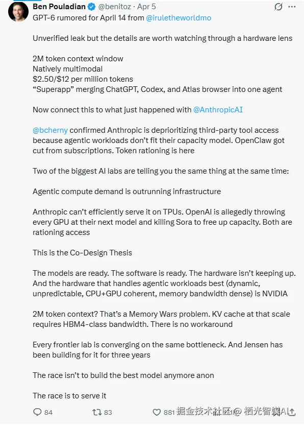 Ben Pouladian 的推文揭示了一个冷酷的现实: “这场竞赛不再是关于谁能做出最好的模型,而是关于谁能承载起它的运行。”