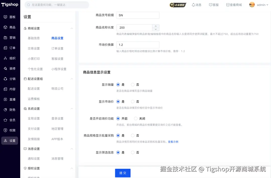 电商运营提质增效,商品板块是核心!Tigshop 开源商城系统 JAVA v5.8.22 版本重磅更新,客户们呼声极高的「商品询价」功能优化上新,同时新增“批量操作权限下放、名称长度自定义”等商品管理能力,全面提升运营效率与管理灵活度。