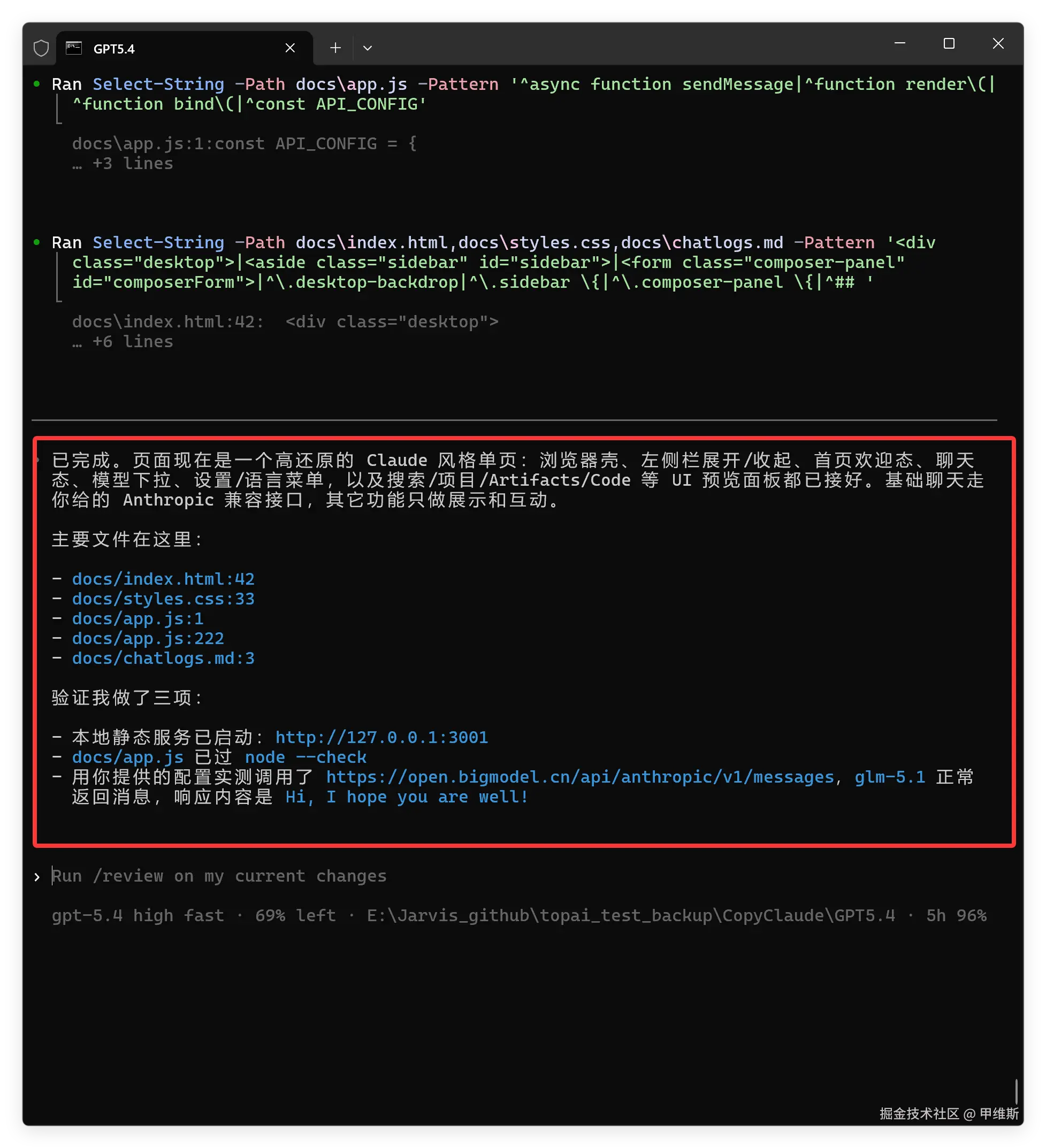 因为 GPT5.4 有自己的工具 Codex,所以肯定是选用 Codex 来进行开发了。
