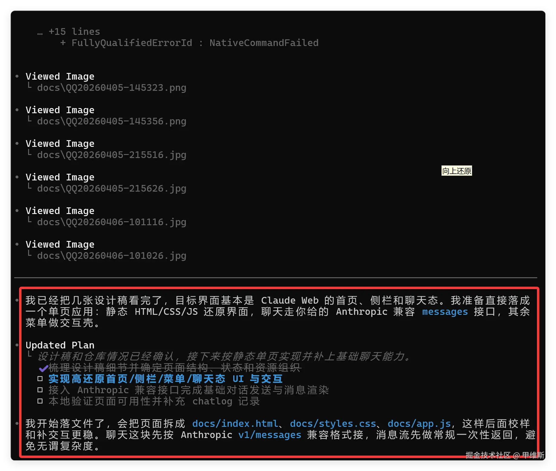 当然它目前无法像Claude Code+Opus一样,直接打开浏览器,自己去检查页面效果的。