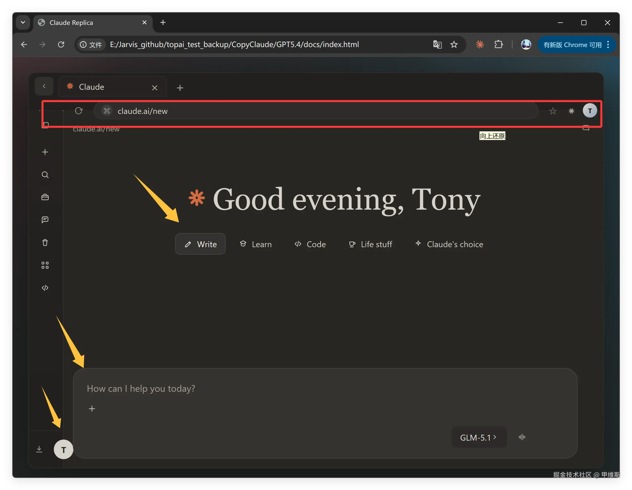 GPT5.4 肯定觉得它牛得不行,把浏览器都给我还原出来了。