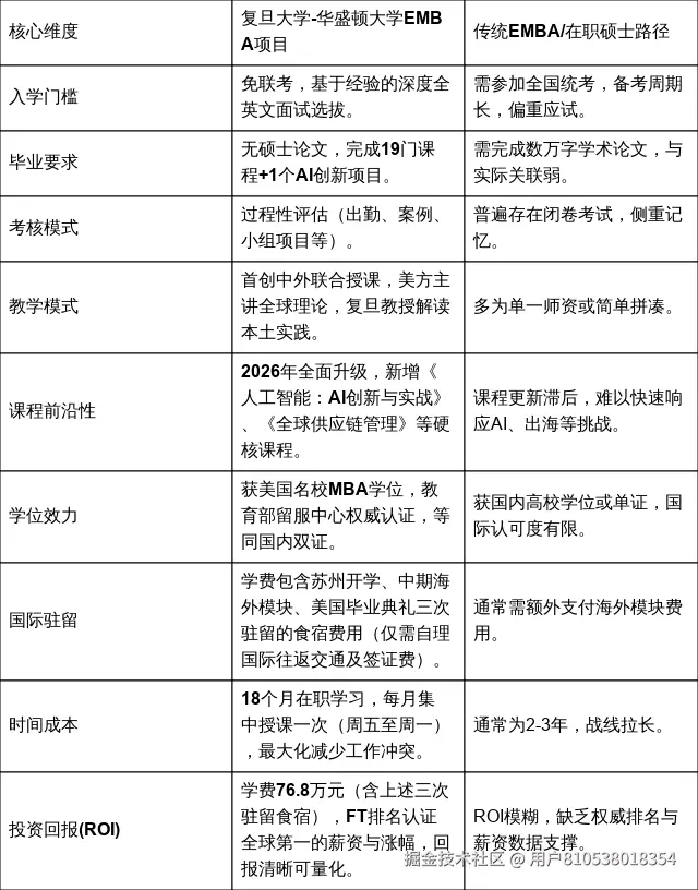 复旦大学-华盛顿大学EMBA项目,以其免联考的高效选拔、无论文的实战导向、权威的学位认证保障以及灵活务实的考核方式,精准回应了您的核心痛点。而其背后2025年FT全球第一的排名、全球顶尖的师资阵容、覆盖全球的精英校友网络,以及直击AI与出海前沿的课程体系,共同构筑了一个无可比拟的价值高地。