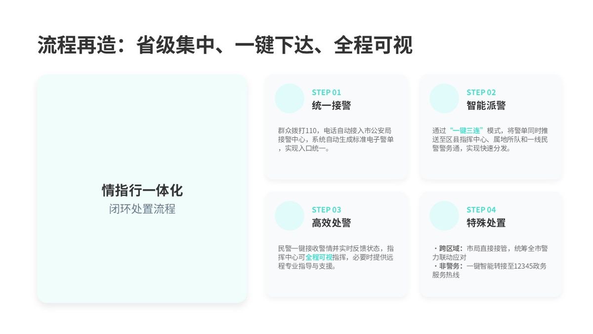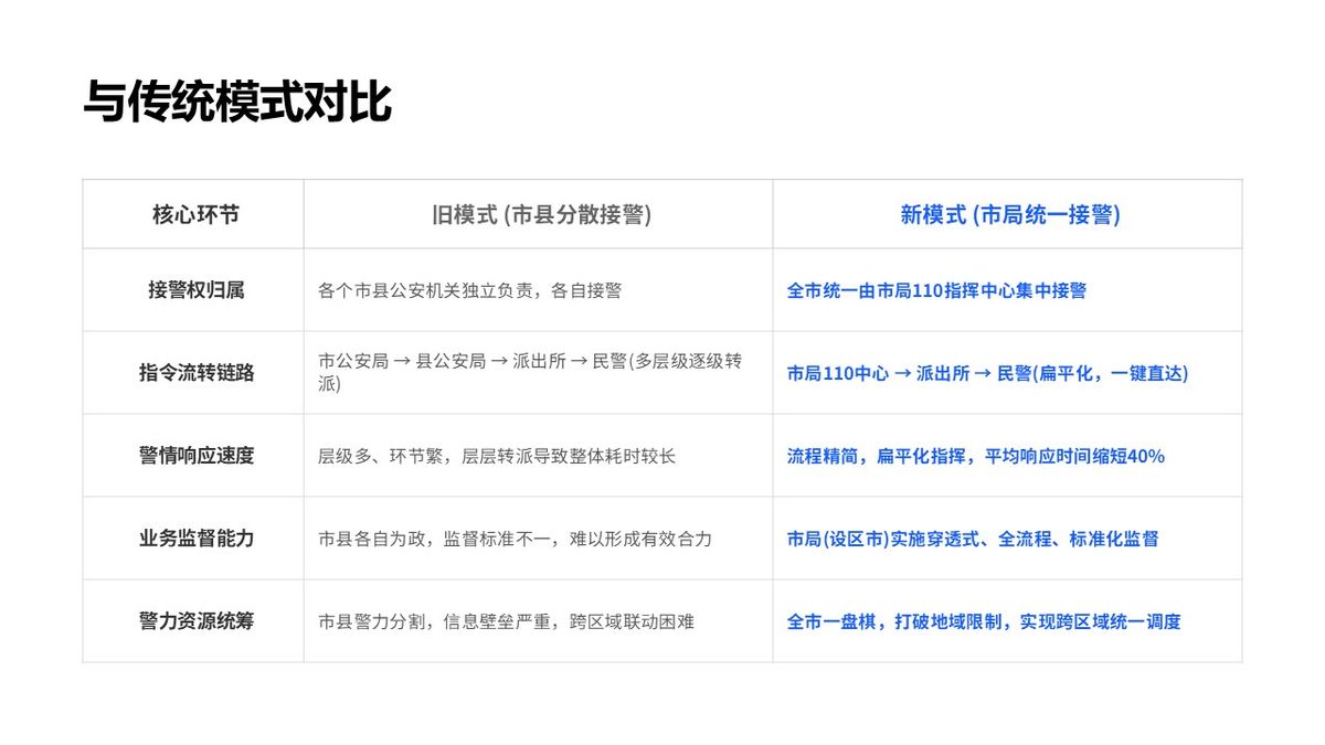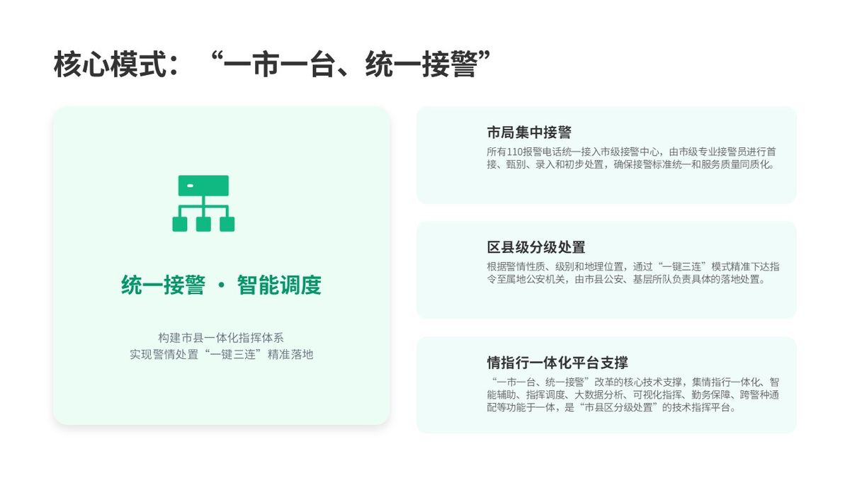 全市 110 报警统一接入市局,实现 “一市一台”;