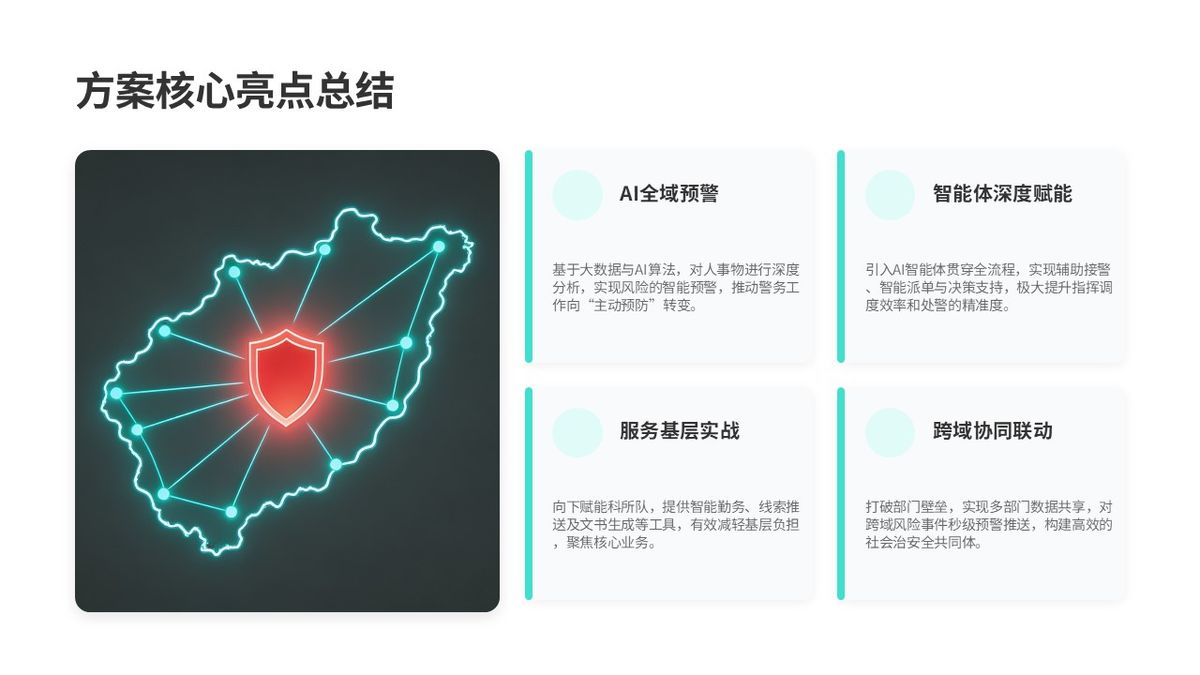 数据互通共享,支撑情报研判、指挥调度、行动处置一体化高效运转,提升响应速度与监管能力。