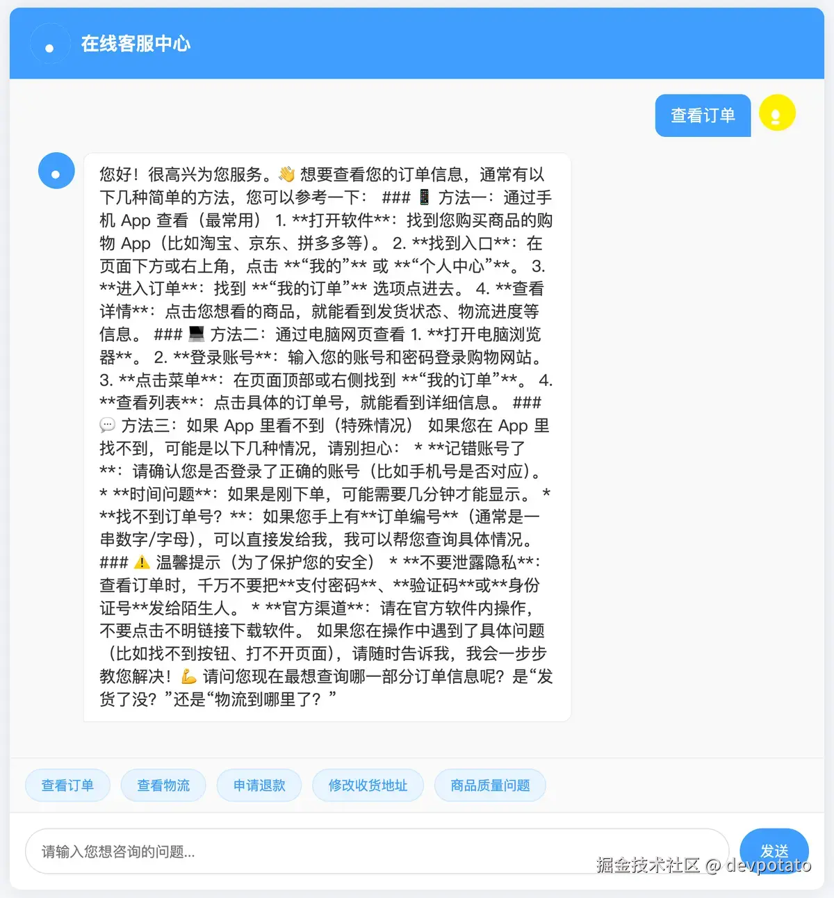 三、实战案例:实现智能客服 AI 助手