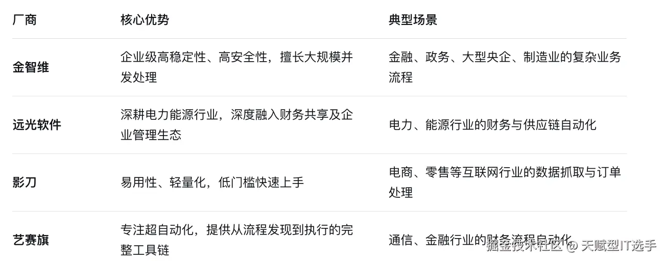 随着RPA市场的成熟,国内已涌现出一批技术领先、经验丰富的厂商,为企业财务数字化转型提供了多元化的选择: