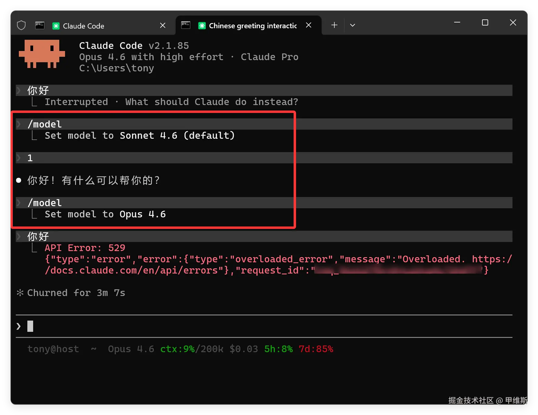Opus 4.6 死活启动不了,一直报 529 错误。我好害怕,不会是账号嗝屁了吧。