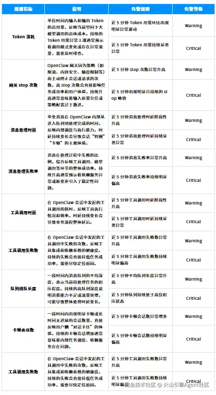 单单“看得清”还不够,更重要的是在问题发生前就收到预警。ArkClaw 的可观测性不仅用于事后复盘,也延伸到主动防御:提供一套开箱即用的监控与告警体系,让你的“虾”在异常行为刚出现时就能被及时发现。