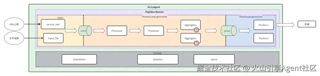 在 ArkClaw 链路里,O11yAgent 的“清洗”不是单一环节,而是贯穿在 pipeline 各处的可配置治理动作:解析、补全、规范化、裁剪、校验,以及从 trace/log 派生指标。