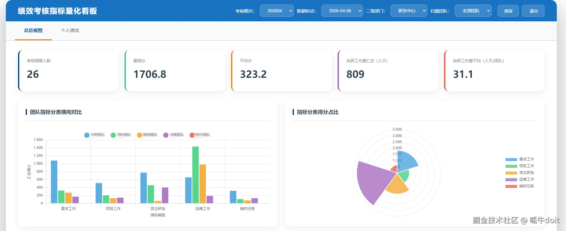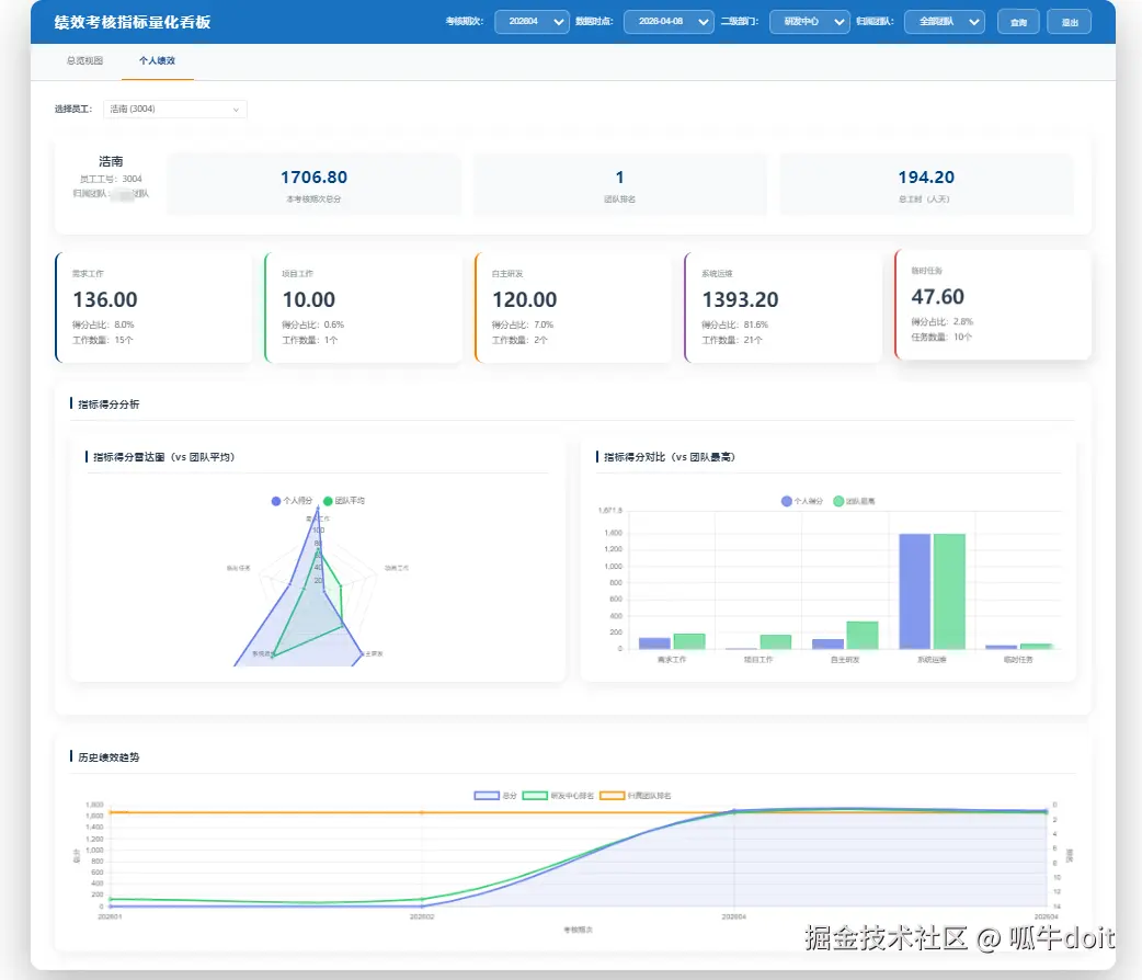 - 团队和个人绩效对比