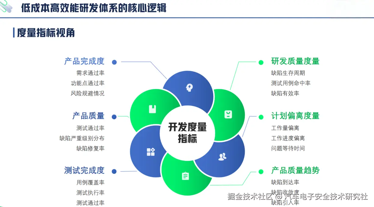 度量指标维度,通过五大类量化指标实现研发全流程监控,包括产品质量趋势、研发质量度量、计划偏离度量、测试完成度、产品完成度,用数据精准把控研发质量与项目进度;