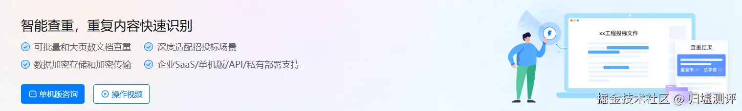 效率层面更是实现质的飞跃 ——几分钟即可完成多份标书批量查重,重复内容精准定位到段落、表格单元格,生成带风险分级的专业报告,附带明确修改建议,标书员无需再熬夜逐页比对,初稿完成后一键上传,喝杯咖啡的功夫就能拿到清晰的查重结果。
