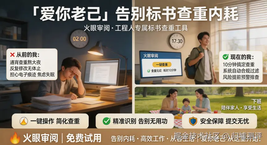 如果您正被标书查重的内耗困扰,不妨试试火眼审阅的免费试用服务,亲身体验 “一键搞定查重” 的高效与省心。让专业工具为您赋能,告别熬夜内耗,“爱你老己” 从高效工作开始!