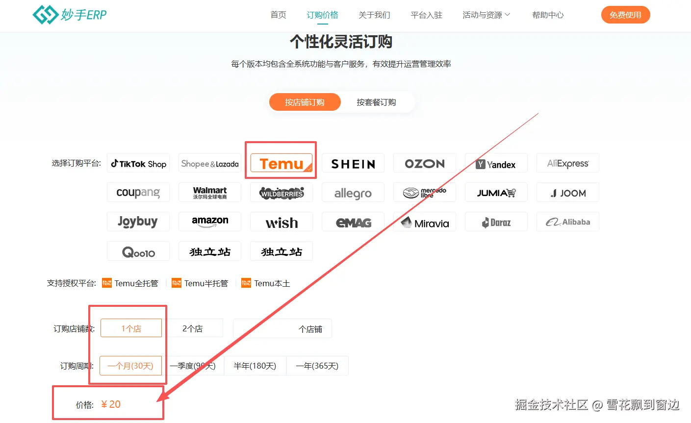 值得一提的是,妙手ERP定价策略对中小企业极其友好:免费版可授权两个店铺且不限订单处理量;付费版单店仅需20元/月(180/年),个人卖家也能轻松负担,极具性价比。