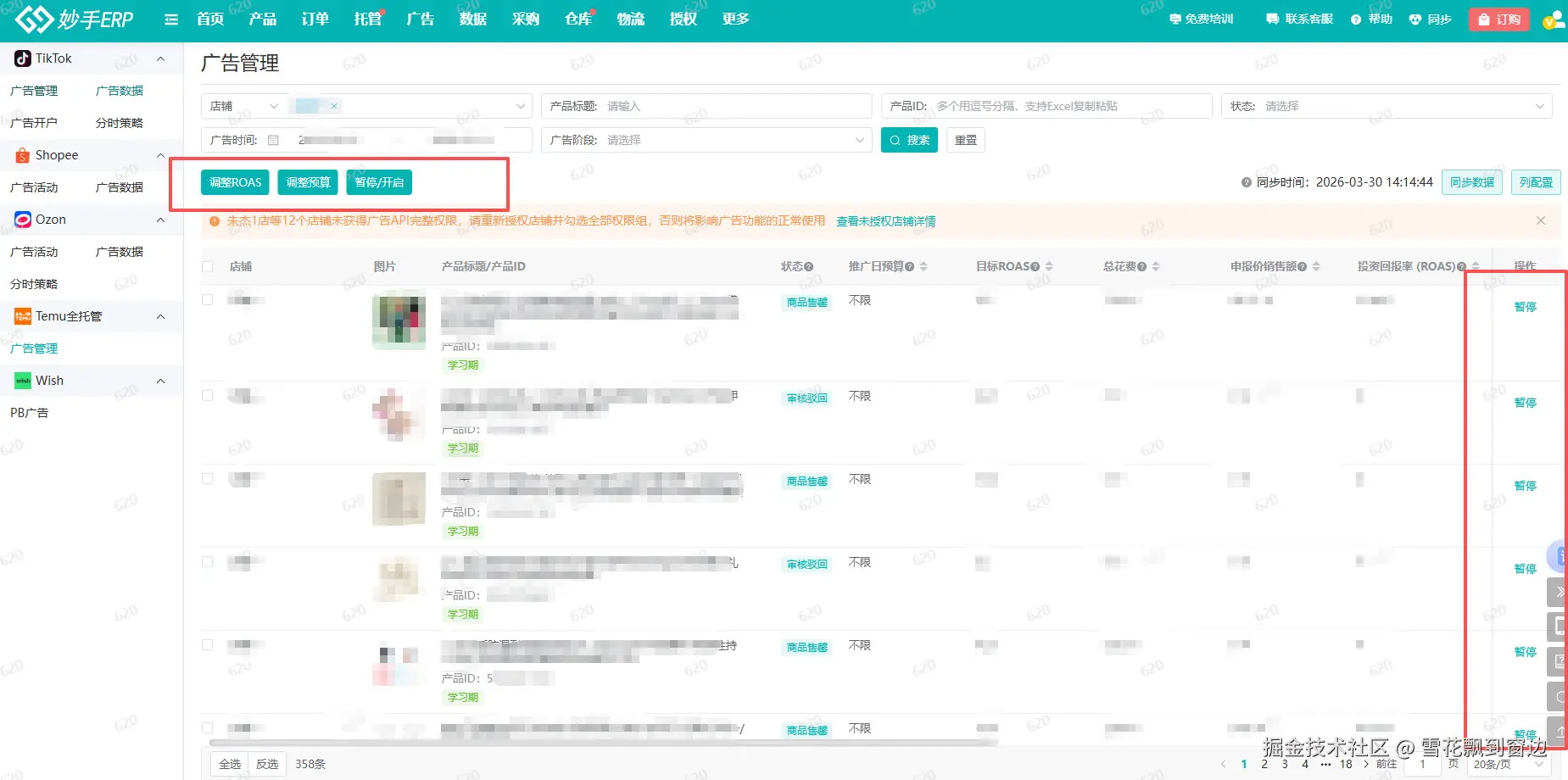 妙手ERP的核心优势在于“批量处理”,支持卖家批量调整多店广告活动ROAS、修改预算、暂停/开启广告活动等,无需逐店逐条编辑,彻底告别繁琐的重复劳动。