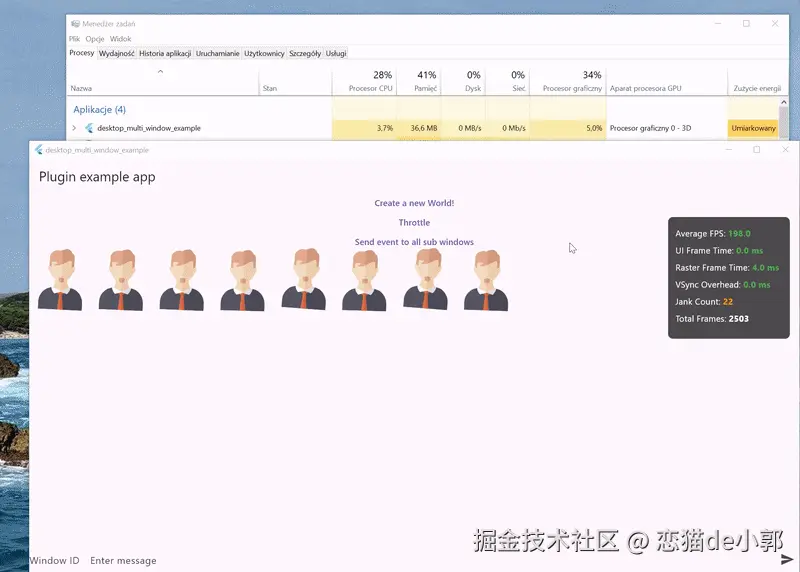 在性能上,目前每个窗口都是独立的 FlutterView 渲染隔离,所以基本互不影响,但是目前存在某些情况下,多窗口 raster time 会导致帧率下降的问题