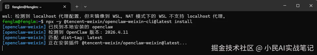 npx -y @tencent-weixin/openclaw-weixin-cli@latest install