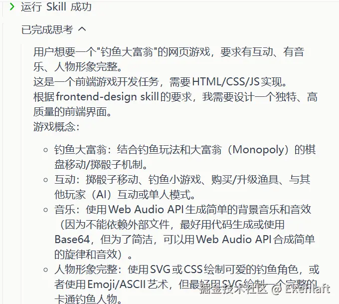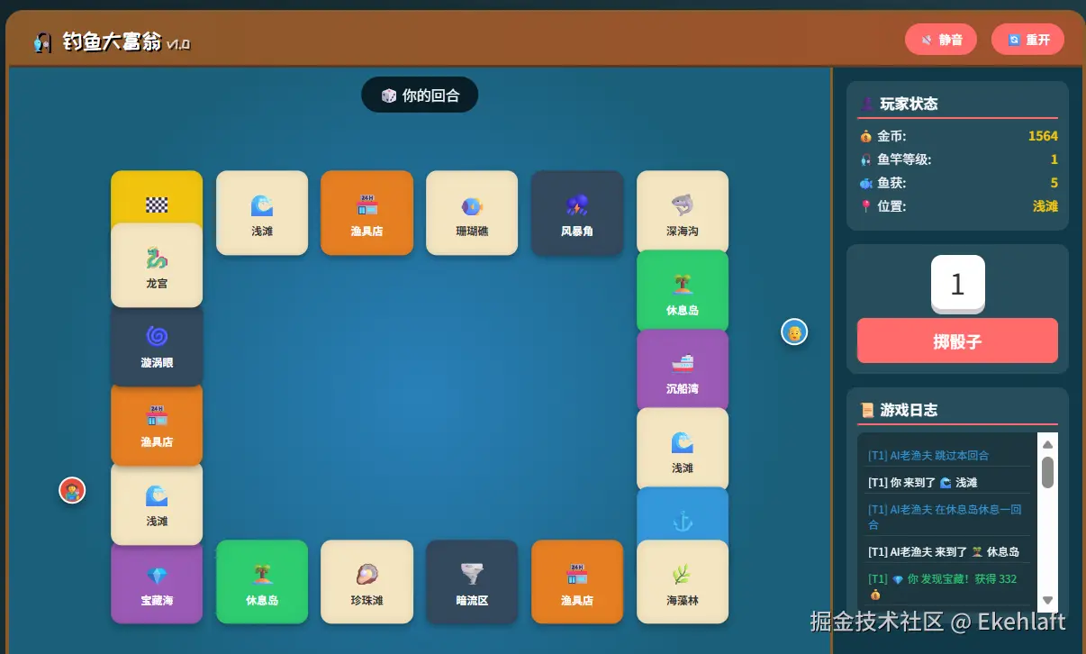 我们做了一次真实测试:仅用一句话描述需求,就让 AI 自动生成了一款可直接运行、能正常互动游玩的《钓鱼大富翁》网页游戏。全程没有人工编写代码,从界面设计到逻辑实现,从音效搭配到交互优化,全部由 AI 独立完成。